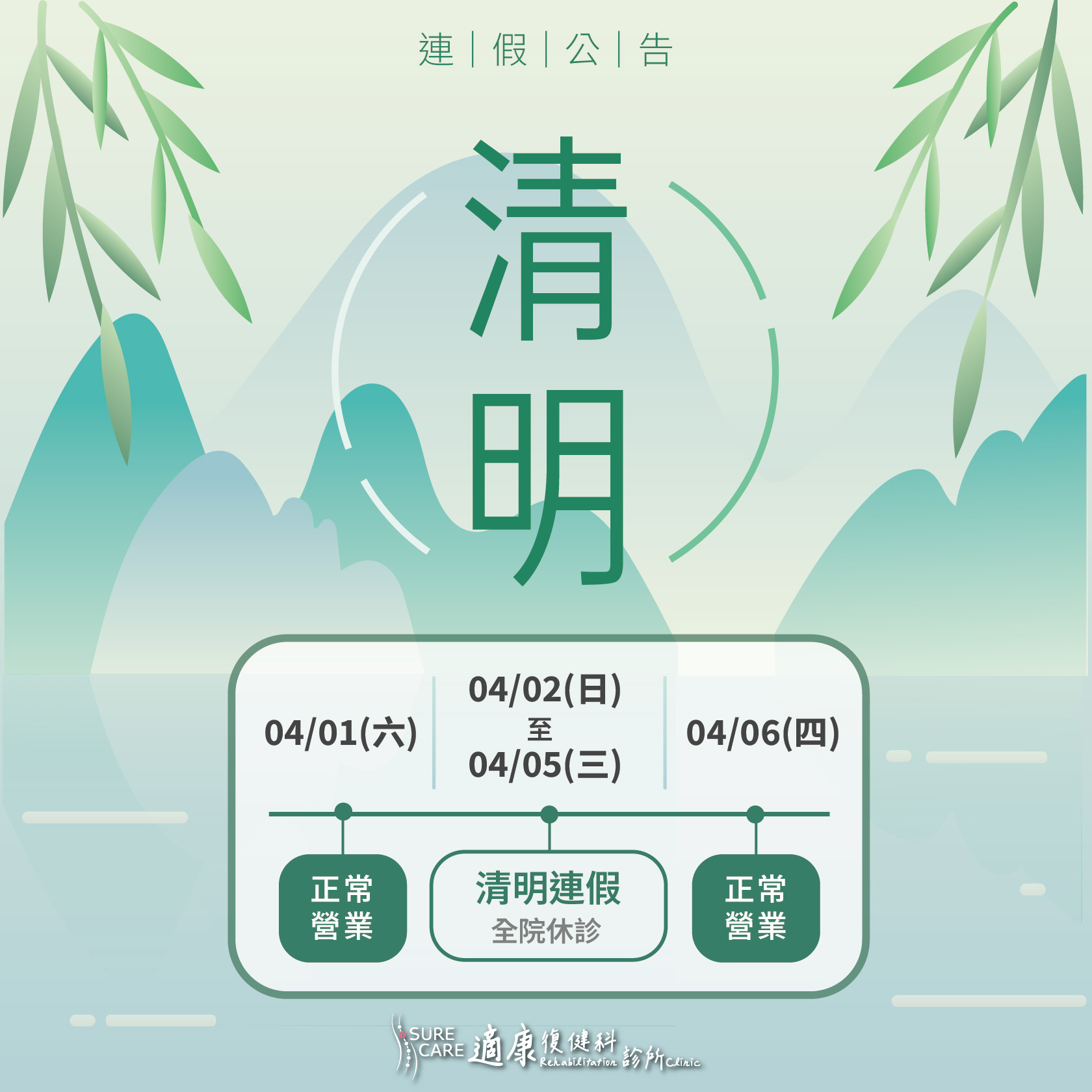 【適康復健|清明連假休診公告】