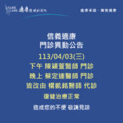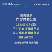 【信義適康|03/27(三)門診異動公告】
