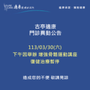 【古亭適康|03/30(六)門診異動公告】