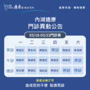 【內湖適康|03/18(一)~03/23(六)門診異動公告】