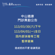【中山適康|03/30(六)下午-04/01(一)門診異動公告】