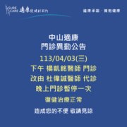 【中山適康|04/03(三)門診異動公告】