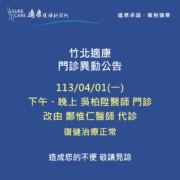 【竹北適康|04/01(一)門診異動公告】