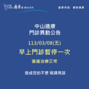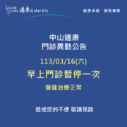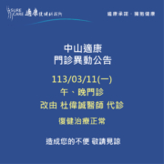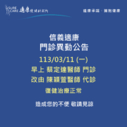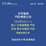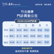 【竹北適康|03/04(一) ~03/09(六) 門診異動公告】