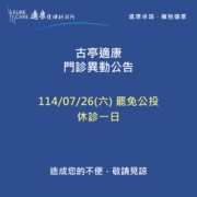 【 古亭適康|門診異動公告 】