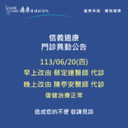 【竹北適康|113/06/03(一)~113/06/08(六)門診異動公告】