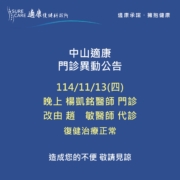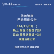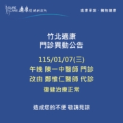 【#適康復健|門診異動公告】